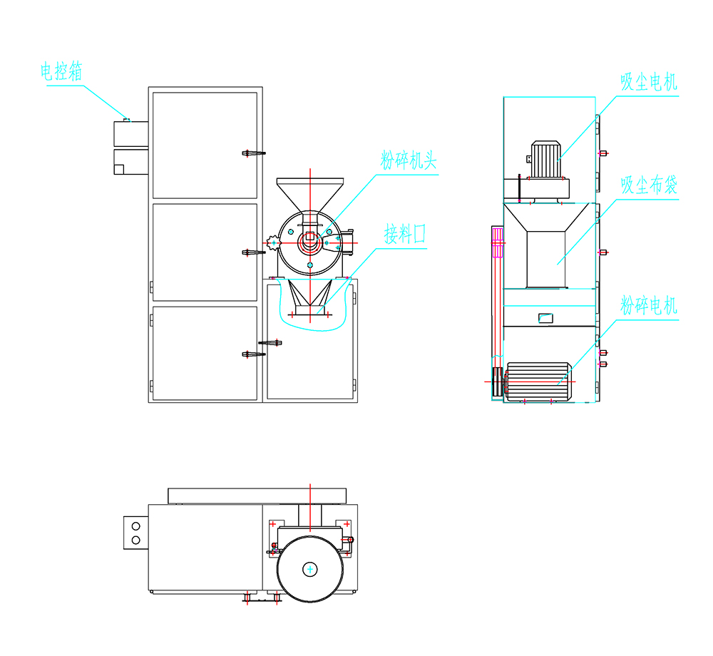 本粉碎机组由粉碎机,ESC物料收箱和ESC吸尘器组成。解决物料在粉碎过程中粉尘飞扬。本机的工作原理是物料进入粉碎室,在高速旋转的活动齿盘与固定齿盘间受齿的冲击、剪切、摩擦及物料间的相互撞击的作用下被粉碎,经筛网筛选后即成为所需的粉料。本粉碎机组的粉碎机、物料收集箱和吸尘器,全部采用不锈钢材料制作。符合药品生产的“GMPS”的要求。